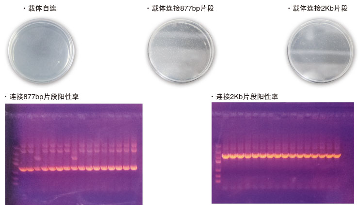 ★ 連接片段長(zhǎng):可以連接長(zhǎng)達(dá)10kb片段(即使5kb片段,也已超過(guò)80%的陽(yáng)性率)。