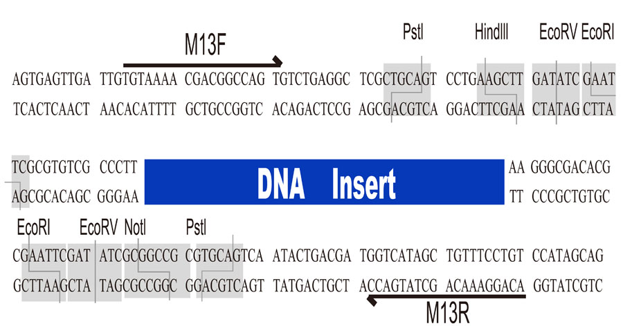注1:“M13通用引物”有多種不同的序列,且個別引物合成公司默認的M13引物與此載體所用的M13序列有差異,合成使用前務必先核對序列。