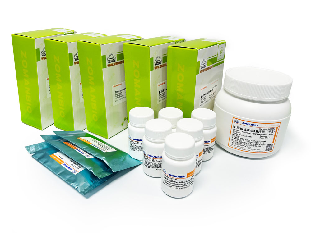 或者配置時自行添加Agar,務必選用優質Agar,添加量為20 g/L。冷卻到50℃把培養基倒入平板中,室溫使其凝固。封口膜封好后倒置保存在4℃冰箱。