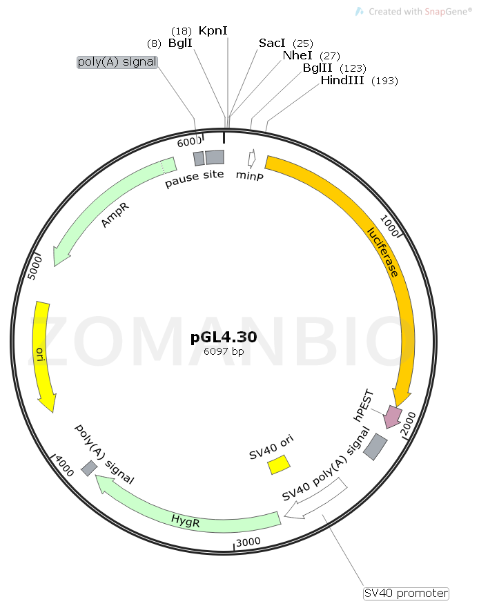 質粒序列請下載:ZK480pGL4.30[luc2P-NFAT-RE-Hygro] 哺乳報告質粒.txt