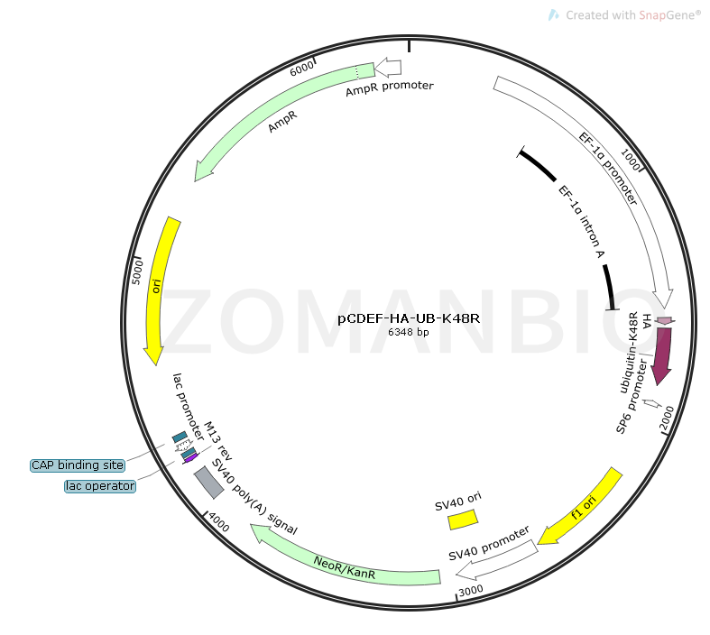 質粒序列可參考(具體以測序為準)下載:ZK1488 pCDEF-HA-Ub-K48R人源基因質粒.txt