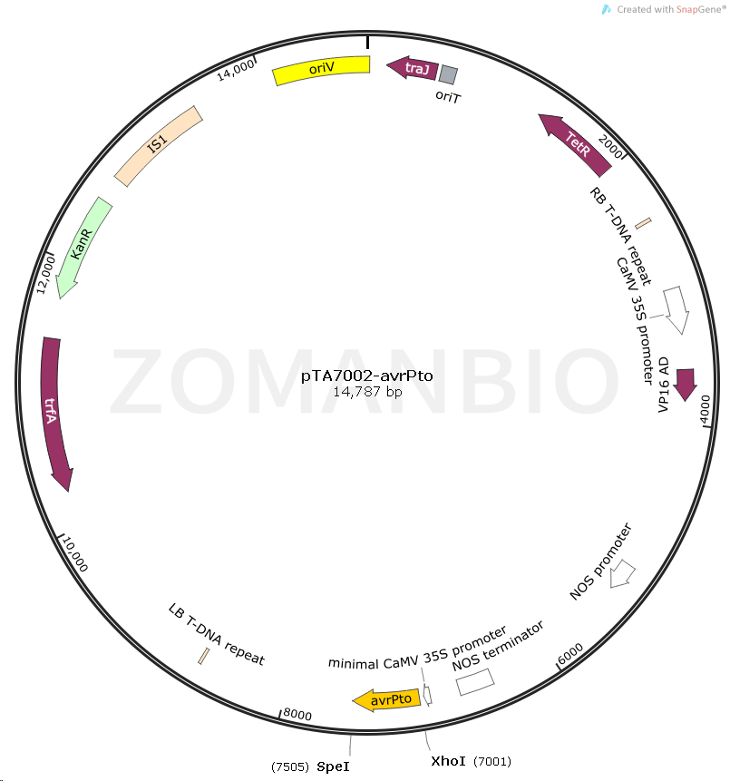 pTA7002-avrPto的質粒參考文獻:https://www.ncbi.nlm.nih.gov/pubmed/12817082