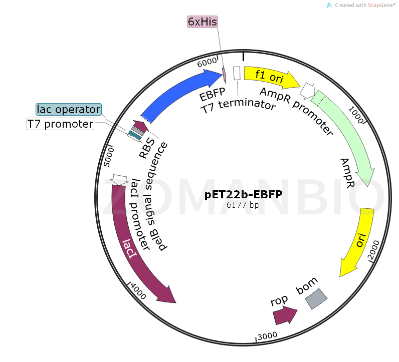 質粒標簽: | N-pelB,EBFP,C-6×His |