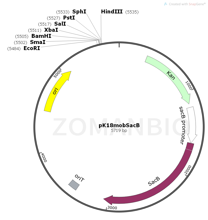 pK18mobSacB是一個大腸桿菌自殺質粒。