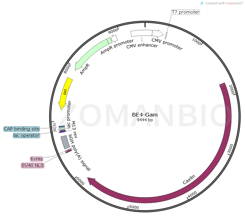 BE4-Gam是一個大鼠基因哺乳細胞過表達質粒。