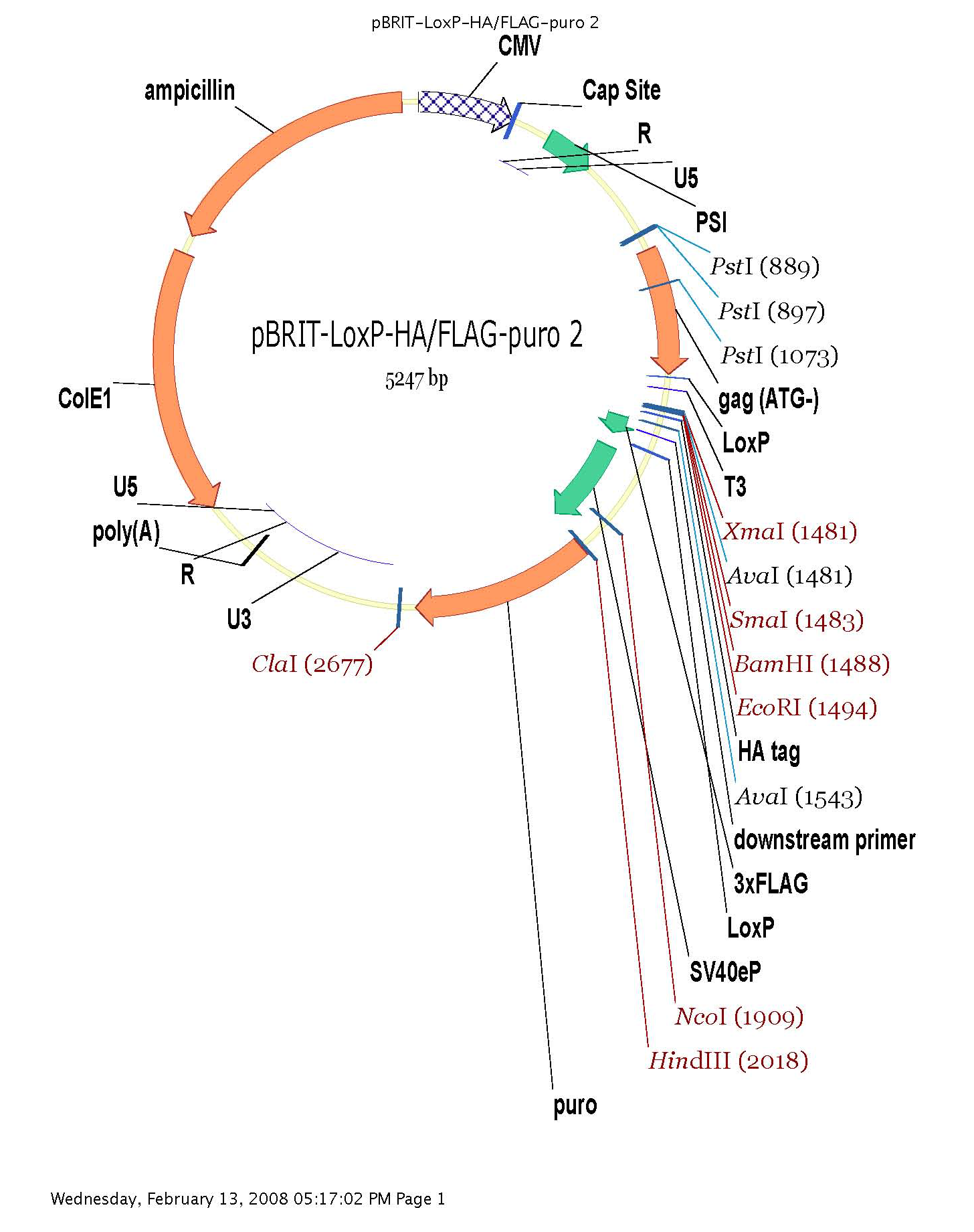 pBRIT HA-Flag是一個哺乳細胞逆病毒Loxp質粒。