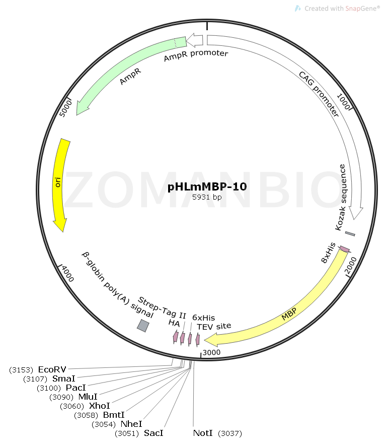 pHLmMBP-10是一個哺乳細胞蛋白表達質粒。
