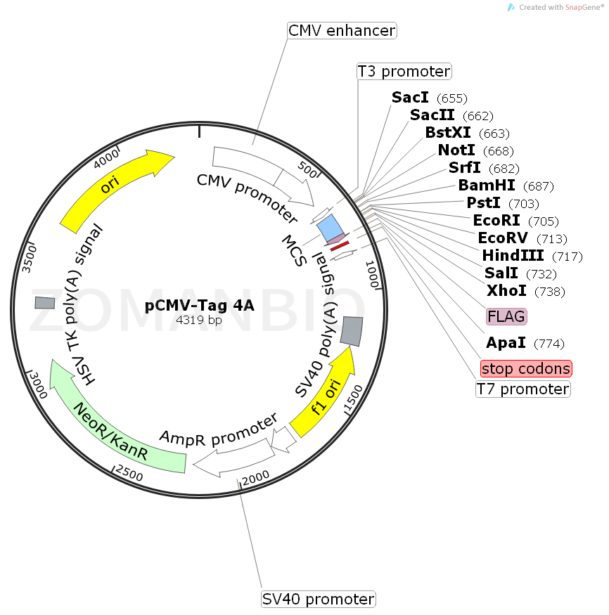 pCMV-Tag 4A哺乳表達質粒。