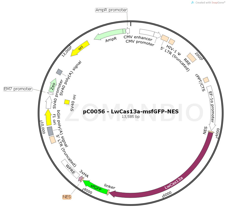 產品名稱:pC0056 - LwCas13a-msfGFP-NES