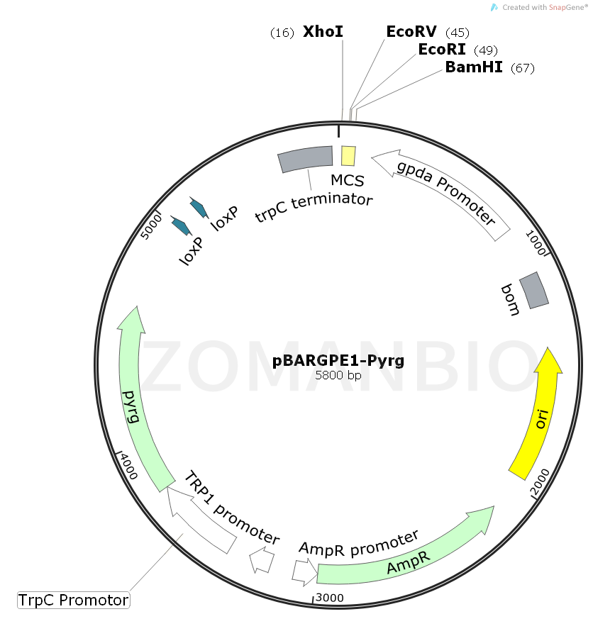 質粒序列請下載:ZK2083 pBARGPE1-PyrG真菌表達質粒.txt